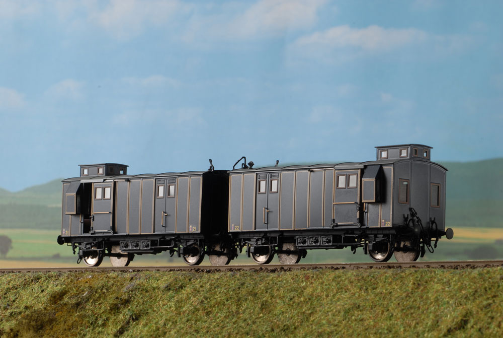 Nella confezione vengono consegnati i vagoni a due assi che nella composizione normale del Treno Reale erano attrezzati a dispensa e bagagliaio .
