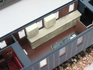 Una volta completate le operazioni di carico dei bagagli della famiglia reale e del seguito, veniva sigillato rimanendo cosi’ fino alla stazione d’arrivo. Pertanto il soffietto d’accoppiamento era normalmente in posizione chiusa e cosi’ e’ stato riprodotto nel modello.