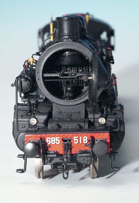 Sono stati riprodotti fedelmente anche tubature, corrimano e aste sulla caldaia. Sul frontale sono riprodotti gli accoppiatori del freno di tipo moderno.